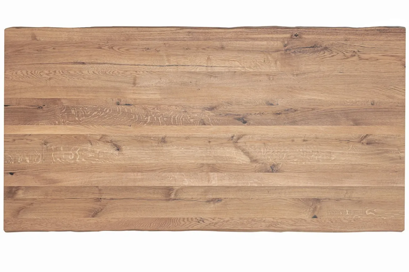 Sie möchten Ihren Traumtisch selbst erstellen, aber Ihnen fehlt noch die passende Platte? Wir empfehlen Ihnen wärmstens diese Tischplatte aus 100% Vollholz Eiche. Die naturfarbene Platte überzeugt nicht nur durch seine von Natur aus gegebenen Risse, sondern durch die geölte Oberfläche sowie das schwarze Epoxid, mit dem jene Risse aufgefüllt wurden, damit die Äste und Wuchsmerkmale noch mehr zum Vorschein kommen. Die natürliche Farbe mit gleichmäßiger Maserung zieht sich über den ganzen Tisch und jeden in ihren Bann.