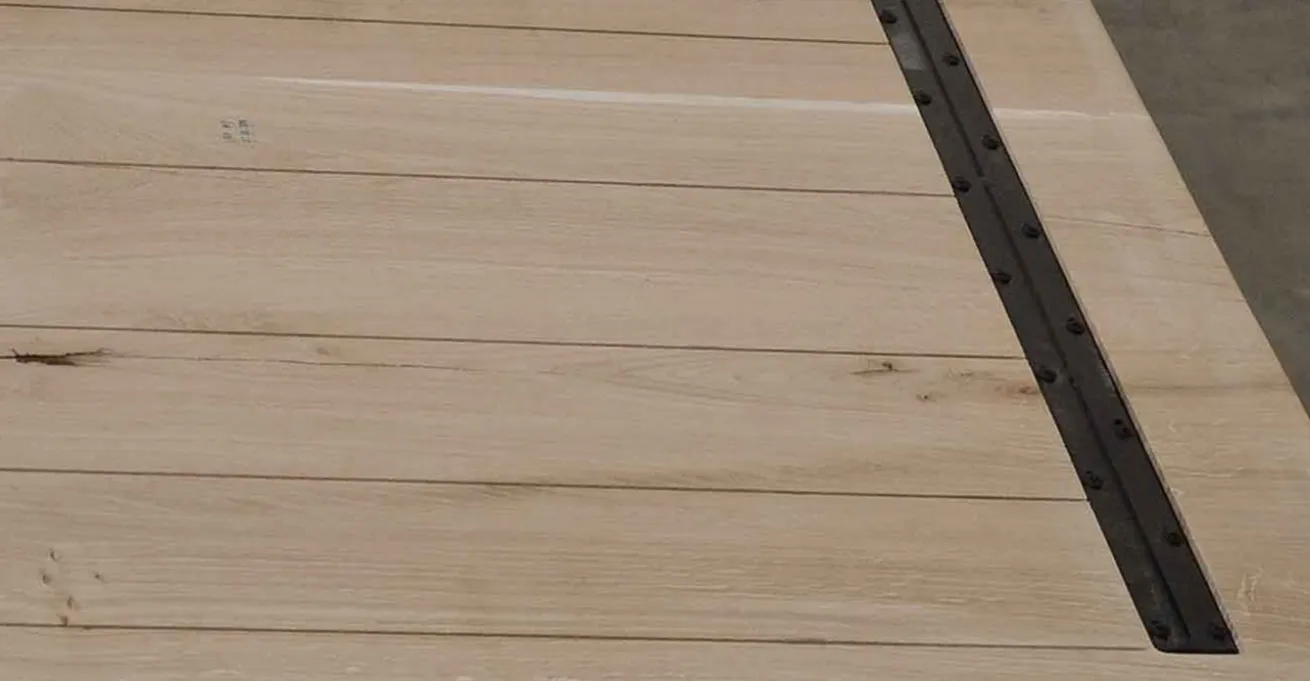Die Oberfläche dieses Massivholzproduktes ist glatt geschlilssen. Die Äste und Risse sind offen, das heißt, im natürlichen Rohzustand. Auch die Kanten sind noch scharf und können nach Wunsch geschliffen werden.