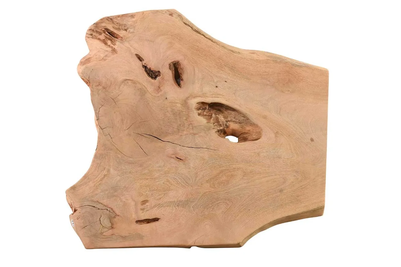 Die Platte aus dem besonderen Massivholz hat eine durchschnittliche Tiefe von 100cm, wobei diese dank der organischen Form variiert. Die Breite misst 100cm und die Höhe 7cm.