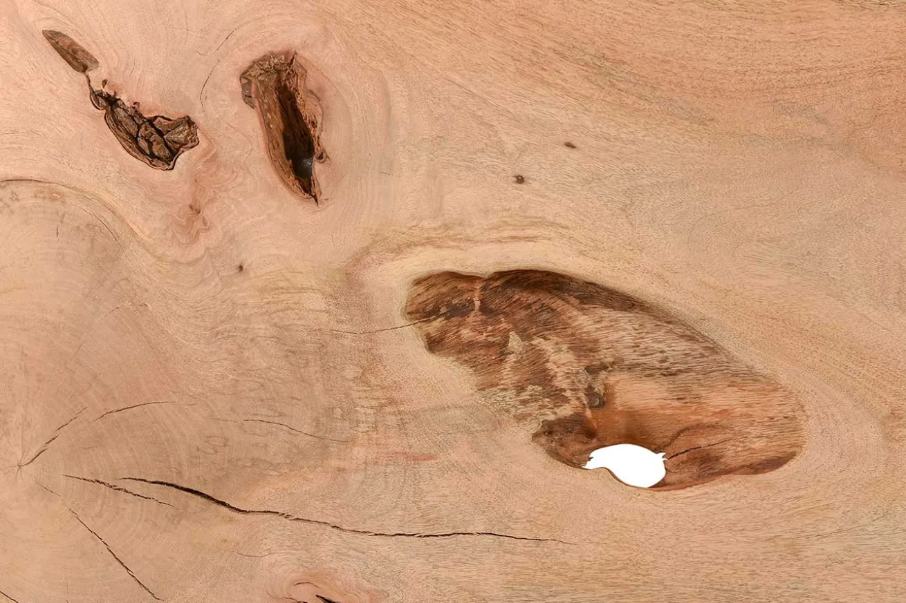Wussten Sie, dass das Mangoholz eigentlich nur ein Nebenprodukt der Mangofruchtproduktion ist? Das Holz wird in große Stücke gesägt und getrocknet, um schließlich zu Kommoden, Truhen oder Tischen verarbeitet zu werden.