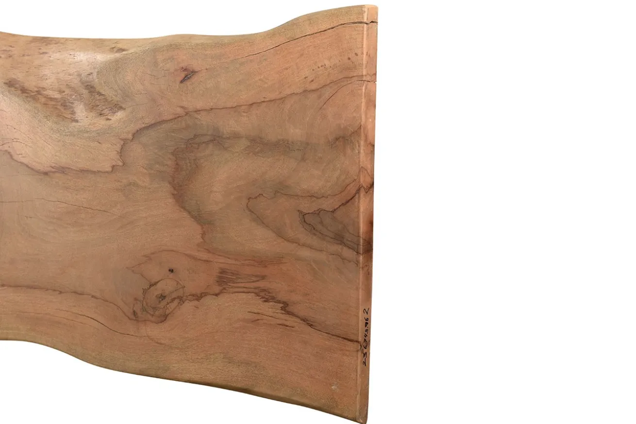 Beim Anblick solch einer vollmassiven Tischplatte können Sie nur gute Laune erlangen: der helle Ton, der sich aus dem naturgegebenen Braun in Kombination mit der warmen Note ergibt, lässt den Raum, in dem die Tischplatte zum Schluss als Tisch verwendet, steht, gleich freundlicher scheinen. Die Variante zeichnet sich durch eine organische Kante und Form aus, so wie der Mangobaum eben gewachsen ist. Zweifel dürfen hier beiseite geschoben werden, geht es bei unserem Mangoholz um ein ressourcenschonendes Holz, da dieses ein Nebenprodukt der Mangofruchtplantage ist. Die Tischplatte ist nicht behandelt, kann nach Bedarf dennoch überarbeitet werden, erzählen Sie uns Ihren Wunsch. Das harte und zugleich ebene Holz kann problemlos zu einem Tisch Ihrer Wünsche verarbeitet werden.
