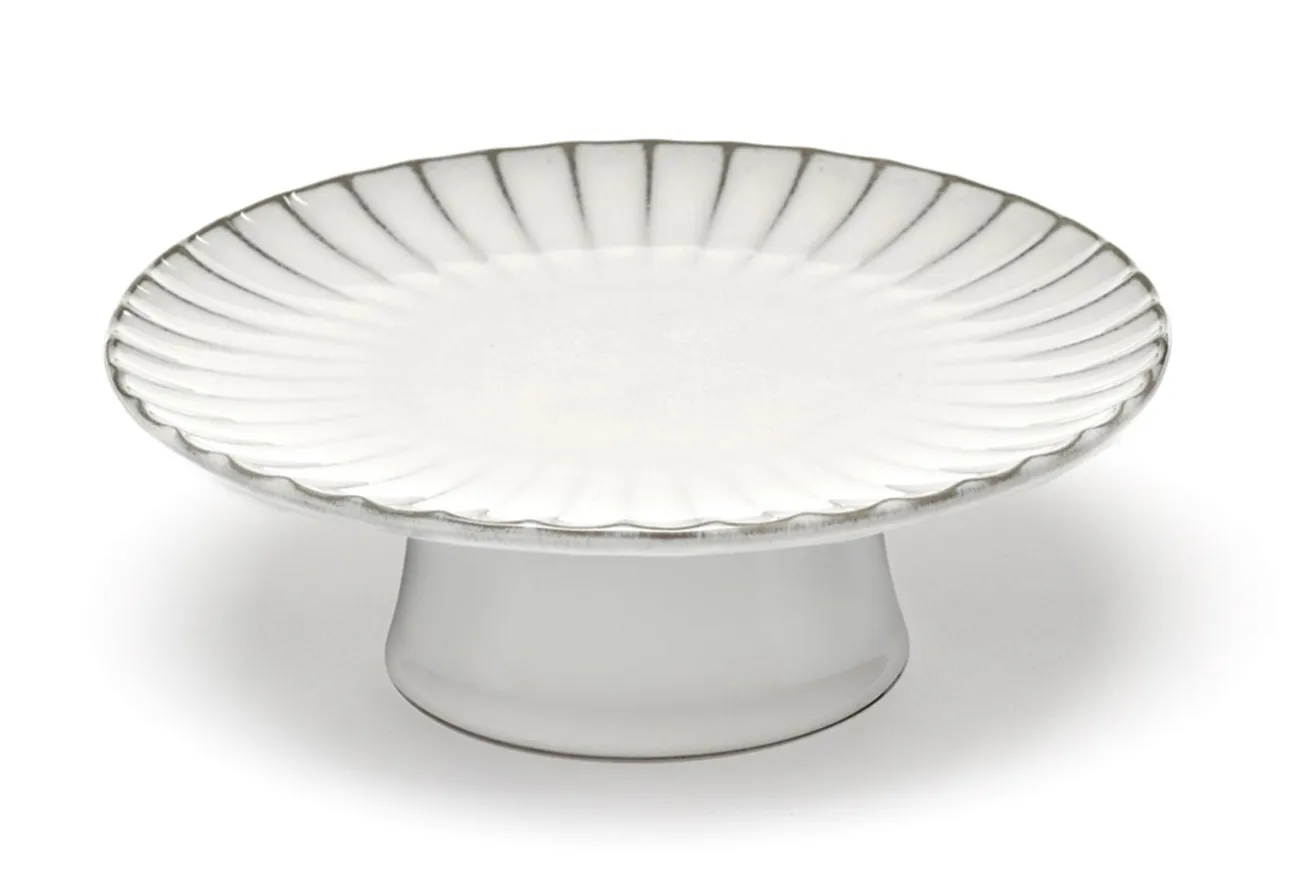 Damit Kuchen und die selbstgemachten Kekse nicht langweilig auf einem Teller liegen, haben wir diese weiße Gebäckschale aus Keramik für Sie. Mit diesem erhöhten Teller sorgen Sie zudem für mehr Platz auf dem Tisch. Auch bei diesem Geschirrstück ist der Rand verziert. Passend zum restlichen Inku-Geschirr.