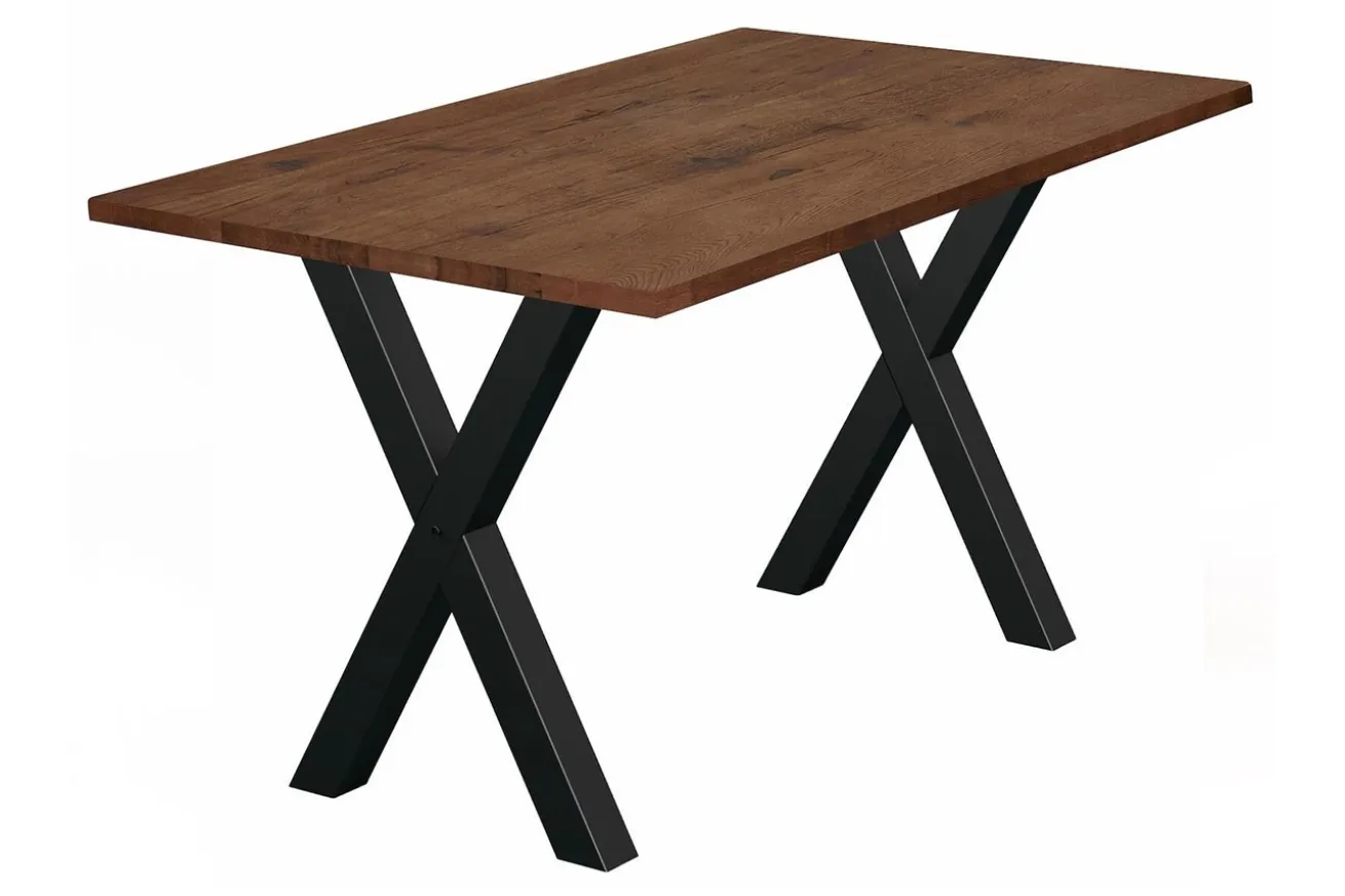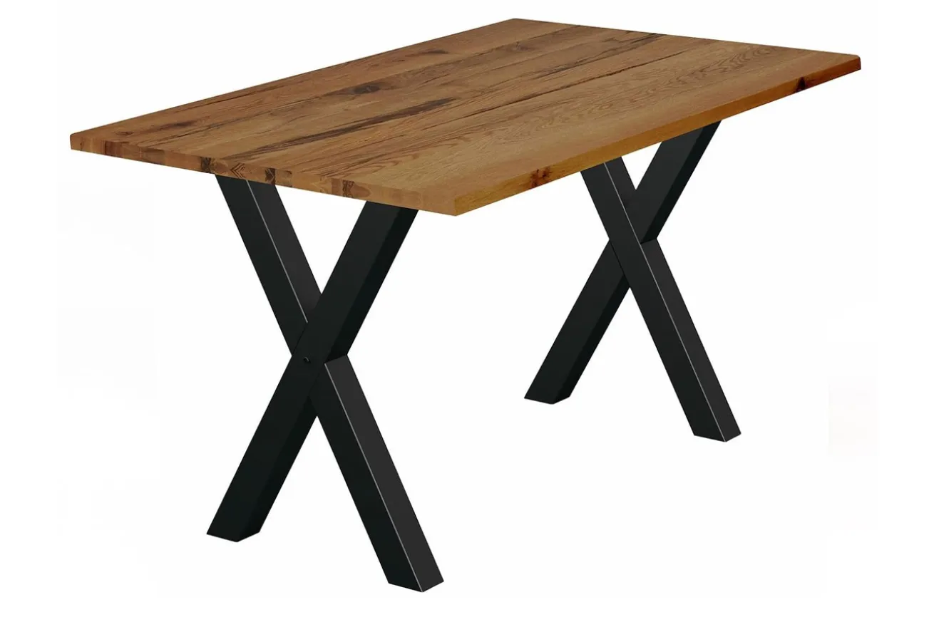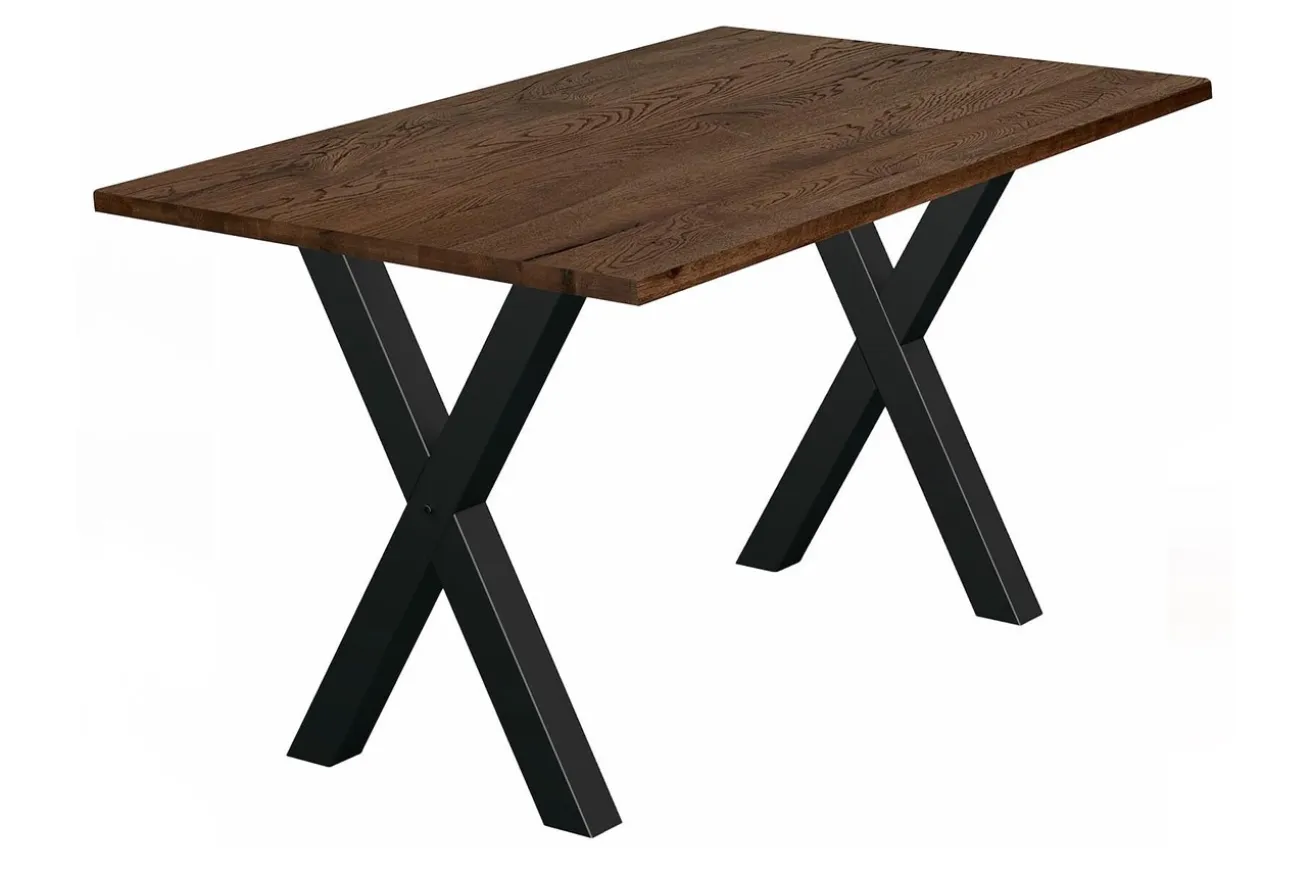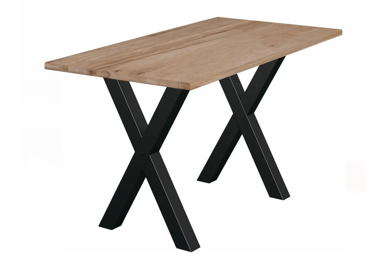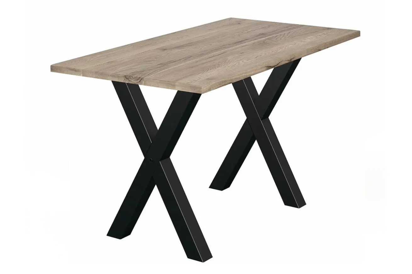 Die geraden Kanten der Tischplatte verleihen dem Tresentisch ein modernes und schlankes Aussehen, während die x-förmigen Metallfüße in Schwarz einen markanten Kontrast setzen. Diese Füße sind nicht nur ästhetisch ansprechend, sondern auch äußerst stabil, um sicherzustellen, dass Ihr Tisch fest und sicher steht.