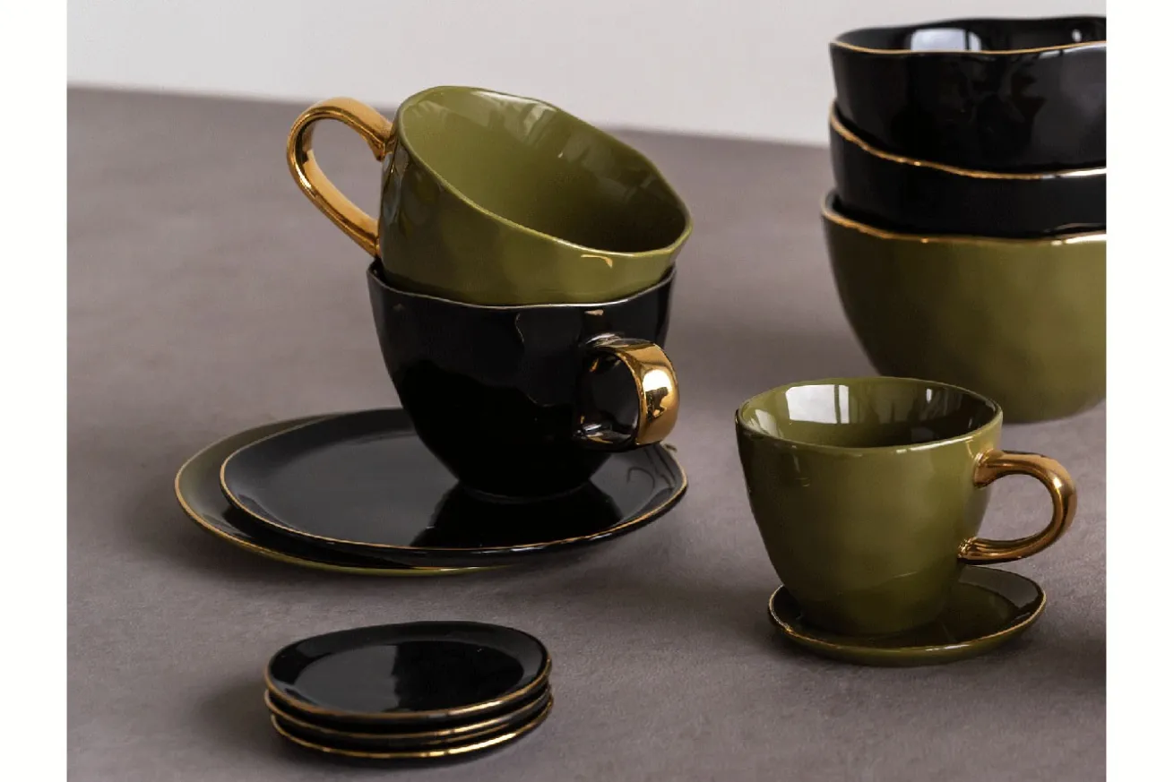 Ergänzen Sie Ihre Tassen mit einem glanzvollen Finish und setzen Sie mit unseren Untertassen aus Porzellan in verschiedenen Farben und goldenem Griff ein Statement für Stil und Qualität. Machen Sie Ihre Kaffeepausen und Teestunden zu einem wahren Genuss für die Sinne.