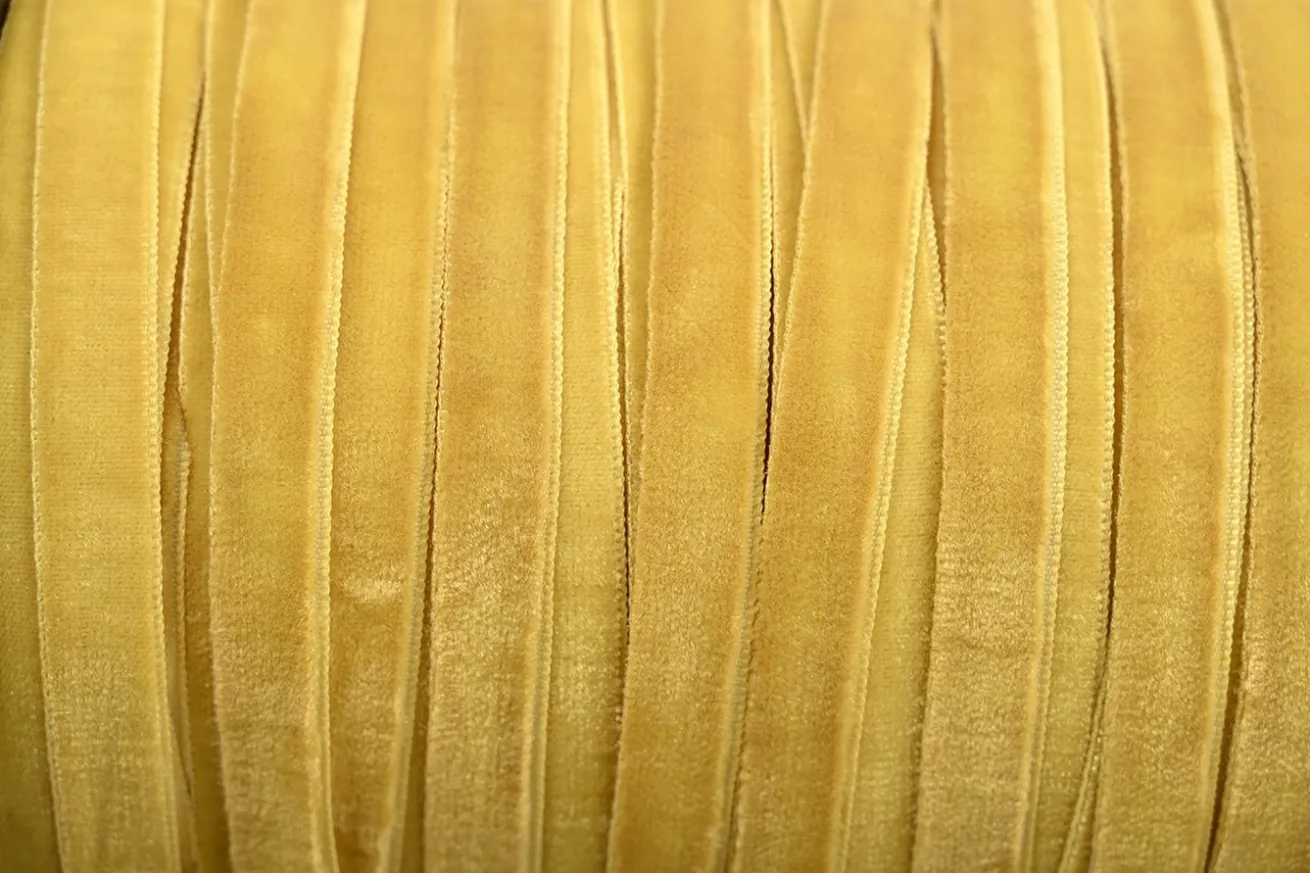Verzaubern Sie Ihre Geschenke, Events und handgefertigten Kreationen mit diesem wunderschönen gelben Samtband. Die Kombination aus samtiger Weichheit und langer Haltbarkeit macht es zu einer ausgezeichneten Wahl für alle, die Wert auf Qualität und Ästhetik legen.