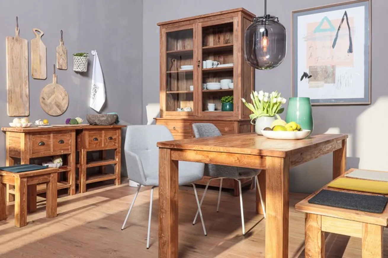 Die Vitrine Loft wird aus hochwertigem, massivem Teakholz gefertigt, das nicht nur langlebig, sondern auch umweltfreundlich ist. Teakholz ist bekannt für seine Widerstandsfähigkeit und seine natürlichen ökologischen Eigenschaften. Durch die Verwendung von recyceltem Holz tragen Sie aktiv zum Schutz der Umwelt bei und fördern eine nachhaltige Lebensweise. Jedes Stück ist ein Unikat, das die natürliche Schönheit des Holzes zur Geltung bringt und gleichzeitig eine Geschichte erzählt. Mit ihren kompakten Abmessungen ist die Vitrine ideal für schmale Räume geeignet. Sie bietet großzügigen Stauraum für Ihre wertvollsten Sammlerstücke, Bücher oder Geschirr und sorgt gleichzeitig für einen stilvollen Blickfang in Ihrem Zuhause. Die klaren Linien und das minimalistischen Design unterstreichen den Vintage-Charakter, während die robuste Bauweise für Stabilität und Langlebigkeit sorgt. Ob im Wohnzimmer, Esszimmer oder Flur – die Vitrine Loft passt sich jedem Raum harmonisch an. Sie können sie alleine verwenden oder mit anderen Möbelstücken im Vintage-Stil kombinieren, um ein einladendes Ambiente zu schaffen. Nutzen Sie die Vitrine nicht nur als Aufbewahrungslösung, sondern auch als Präsentationsfläche für Ihre Lieblingsstücke.