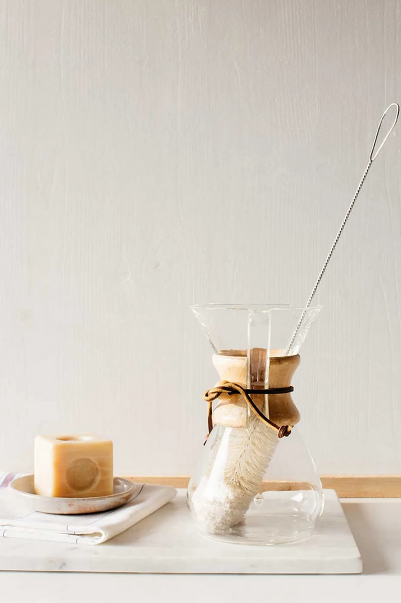 Praktische Spülbürste zum Reinigen der weinkaraffen oder bauchigen Glasvasen. Das weiche Baumwolltuch reinigt und pflegt die empfindlichen Gläser gelichzeitig, so dass keine Kratzer entstehen können.
